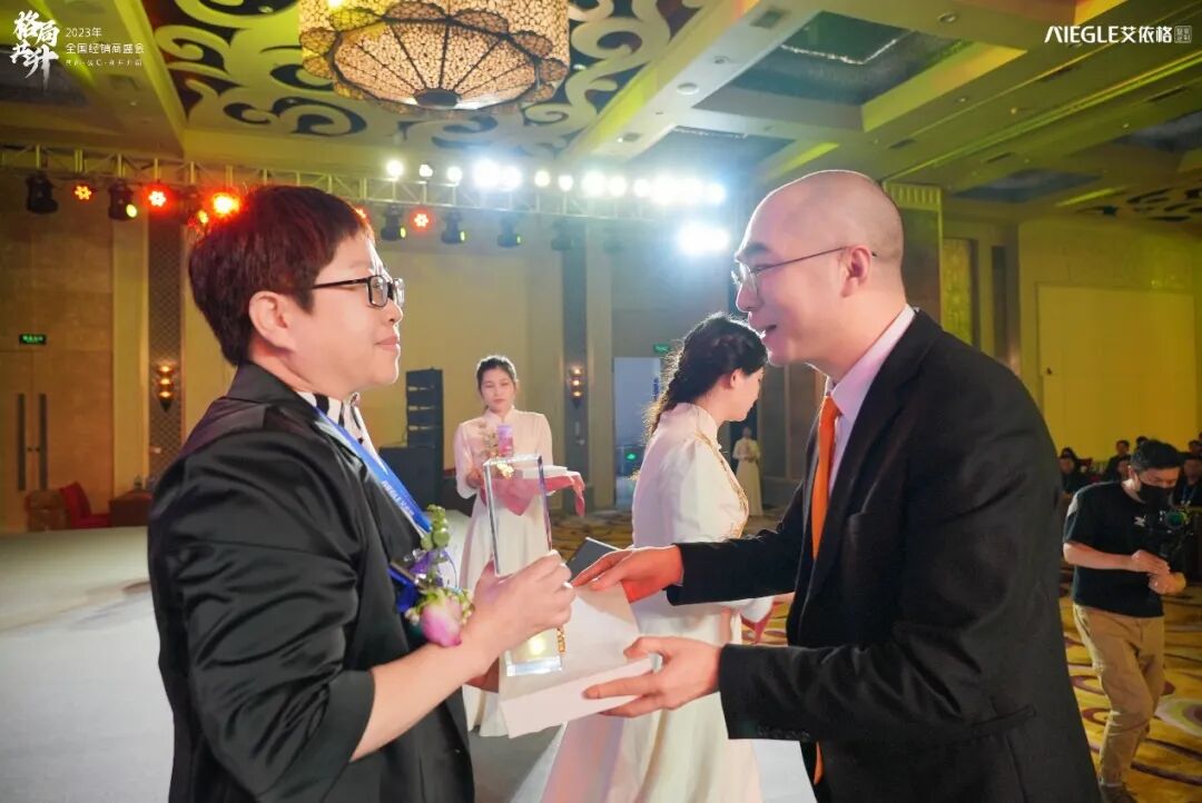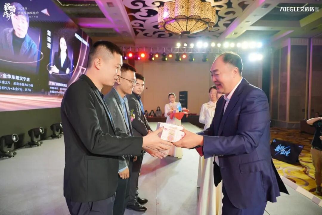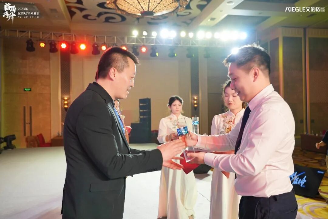 艾依格營銷中心副總經(jīng)理兼沈陽辦事處負(fù)責(zé)人劉翔先生過去的2022年,艾依格創(chuàng)造了許多佳績,碩果累累,收獲滿滿。會(huì)上,艾依格總部對于過去一年中取得優(yōu)異成績的經(jīng)銷商給予表彰獎(jiǎng)勵(lì),樹立榜樣作用,點(diǎn)亮前進(jìn)標(biāo)桿。大會(huì)頒發(fā)了最佳新秀獎(jiǎng)、最佳店面獎(jiǎng)、年度業(yè)績獎(jiǎng)、2022年度業(yè)績對賭優(yōu)勝獎(jiǎng)等在內(nèi)獎(jiǎng)項(xiàng),以感謝每一位經(jīng)銷商家人做出的突出貢獻(xiàn)。他們以高昂的斗志馳騁跨越,在競爭中勇立潮頭,乘風(fēng)破浪,始終奮戰(zhàn)一線,不斷以更高標(biāo)準(zhǔn),追求工作精進(jìn),業(yè)績提升!燈光璀璨,掌聲如雷,獲獎(jiǎng)的家人們收獲了熱烈的掌聲。新的一年,新的挑戰(zhàn),新的機(jī)遇。艾依格鼓勵(lì)經(jīng)銷商家人們勇于挑戰(zhàn),敢于冒險(xiǎn),奮力突破,并向所有經(jīng)銷商家人們發(fā)出《艾依格2023年挑戰(zhàn)者征集令》。