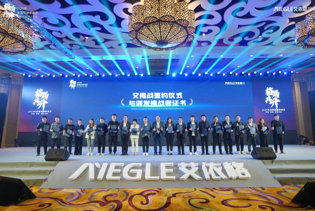 在艾依格營銷中心總經(jīng)理李仲良先生的宣講下,現(xiàn)場氣氛高漲,“2023年艾挑戰(zhàn)俱樂部”成立儀式,將本次會(huì)議推向了高潮。在激昂的氛圍中,艾依格總部領(lǐng)導(dǎo)與優(yōu)秀經(jīng)銷商,在大家的共同見證下,完成了艾挑戰(zhàn)俱樂部成立儀式。